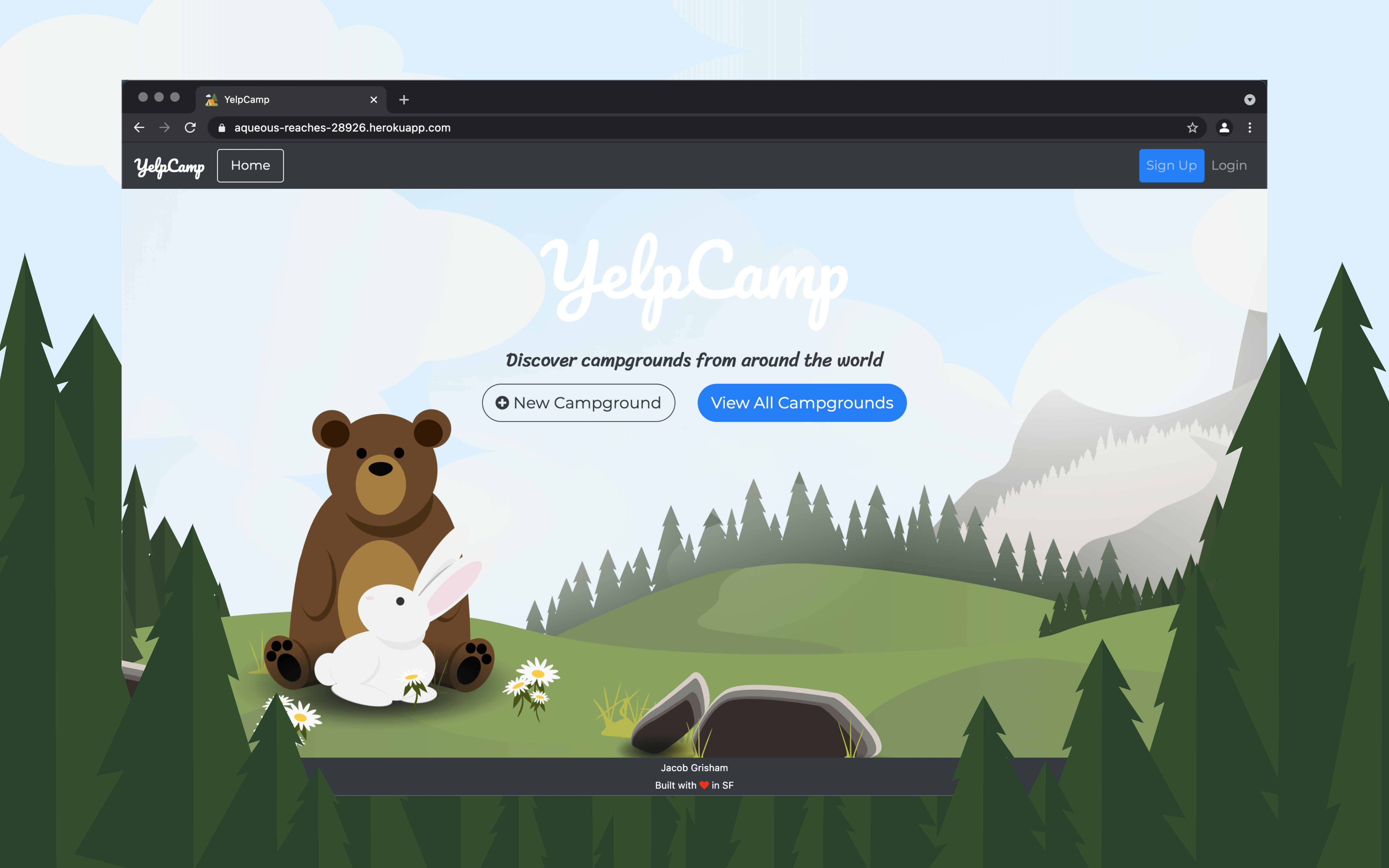 First full-stack web application. Fundamentally, it's review website for campsites. The main features are login, sign-up, Admin role, Google Maps API, and Create, Edit, Update, Delete (CRUD) for campgrounds, comments, and reviews. Create routes have authentication. Edit, Update, and Delete routes have authentication and authorization. The basic foundation was built in the capstone project from the Udemy course The Web Developer Bootcamp. The core of the application was built from March - June 2020, with sporadic updates up until April 2022.